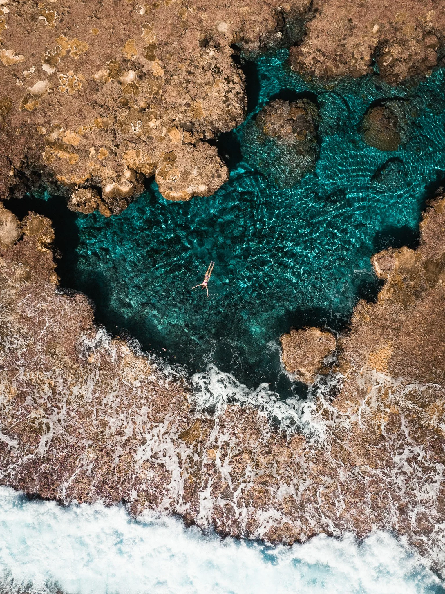 In the late afternoon sun, you’ll wander up to lookout points, hike into hidden beaches and swim in the most beautiful rockpools you could ever imagine, where you can dip under the coral ceiling like ice frozen over a lake.
